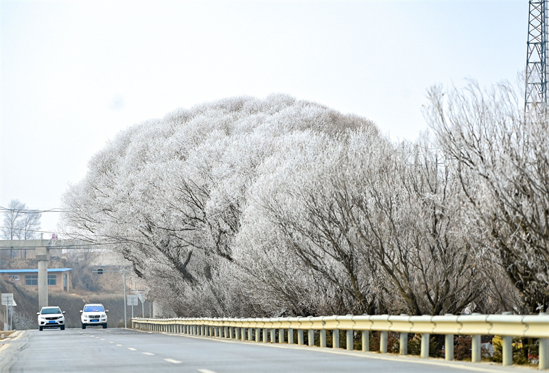 市區(qū)出現(xiàn)霧凇景觀