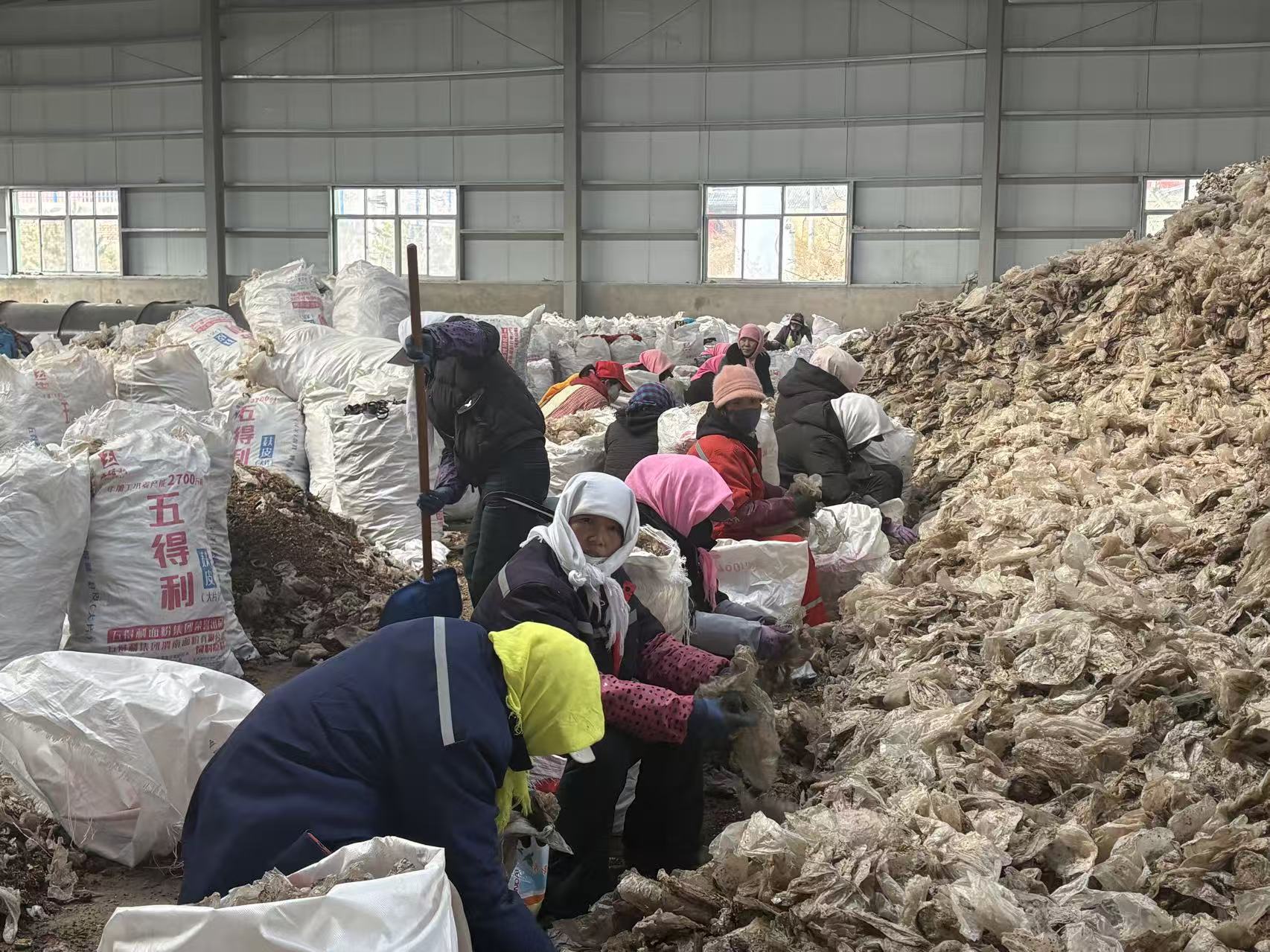 工人正在分揀菌袋。(圖片由受訪單位提供)